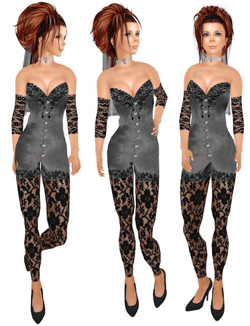 The next gown is called Marie and it is by Cherry Bomb design. You have to pay 1 L$ to get this great gown. You can wear it all buttoned up or you can show a little more skin. Or you can wear it to go clubbing as a short sexy dress with lace leggings.