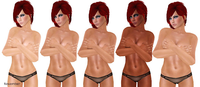 Today I heard in the Fabfree group that Filthy is going to concentrate on mesh clothing and that they are having a hughe skin sale. Not only that but for group members they put up a box with ALL previous skin gifts, starting with the March one. The group is closed for the time being and I hear you sigh: so why tell us this? Well for NON group members: you can BUY this box with great skins & shapes for just 1 L$. Below is what you get. The sale runs till December 5th.