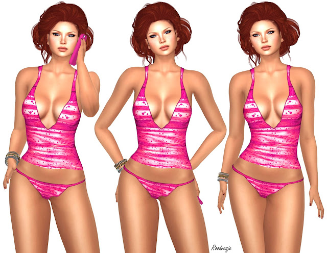 The Graciosa top and shorts are also a group gift. They come with system avatar layers but it also comes with appliers for all mesh bodies.