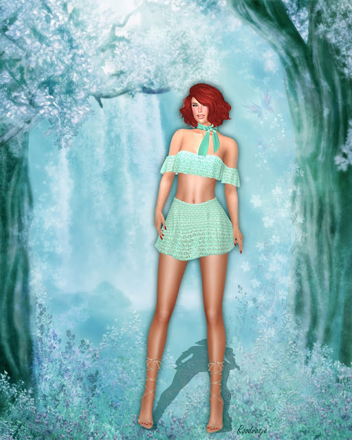 My next find are the delightful dresses SMESH has on offer at the Designer Circle. The cute green skirt & top & scarf outfit fits Maitreya, Belleza and Slink. It is just 120 L$.